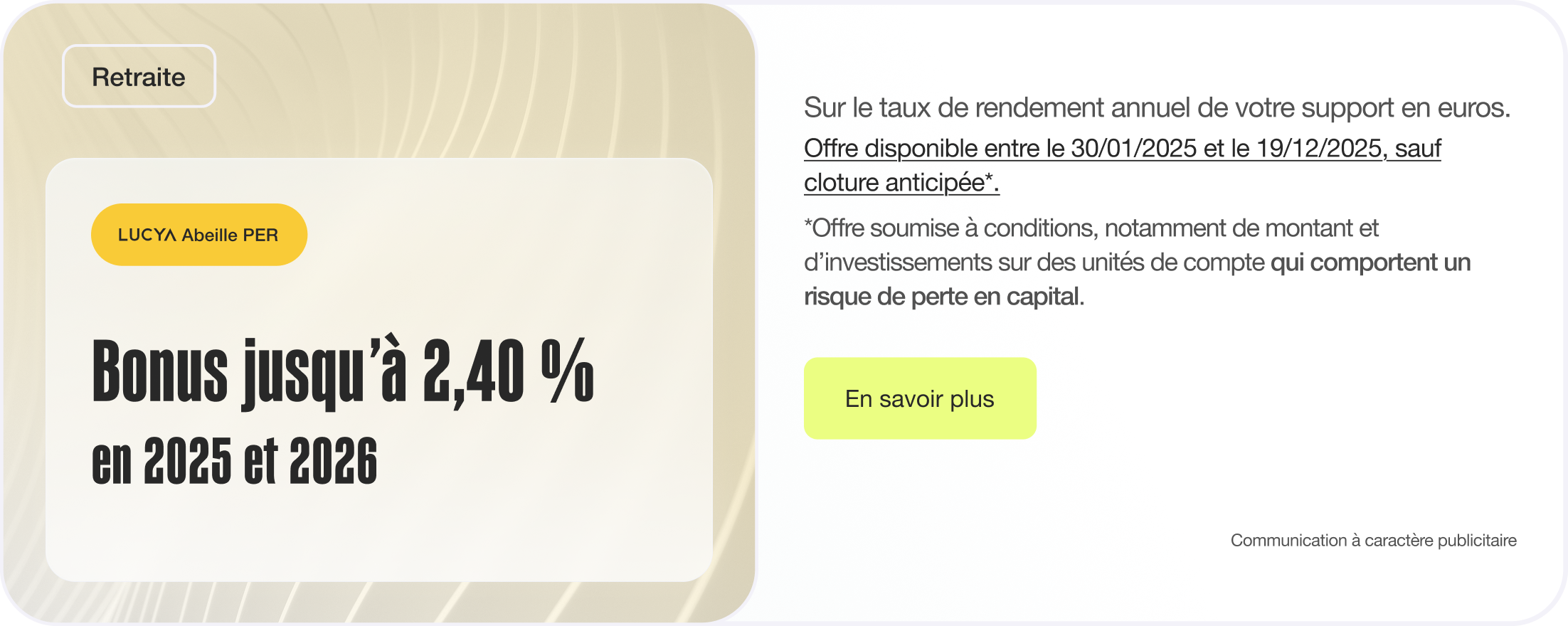 - Pour une adhésion ou un versement sur le contrat Lucya Abeille PER :