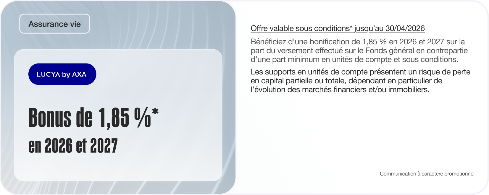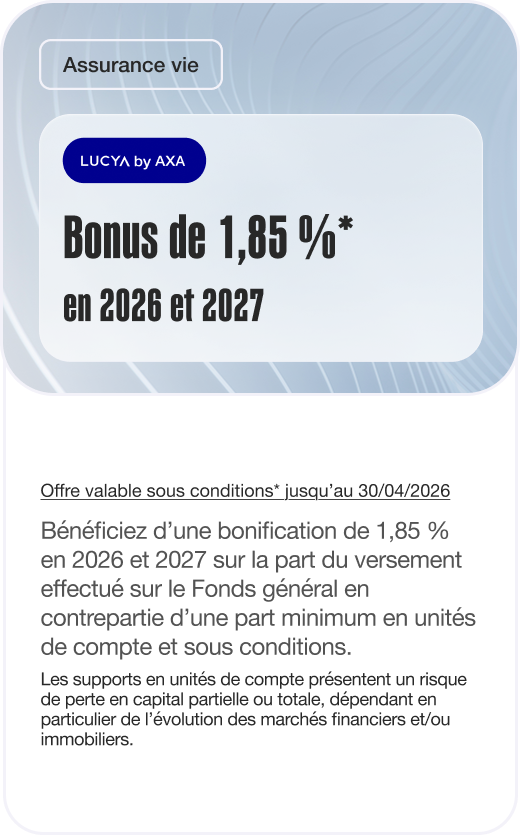 Conditions de l’offre Bonus Lucya by AXA 1,85 % 2026 et 2027 :